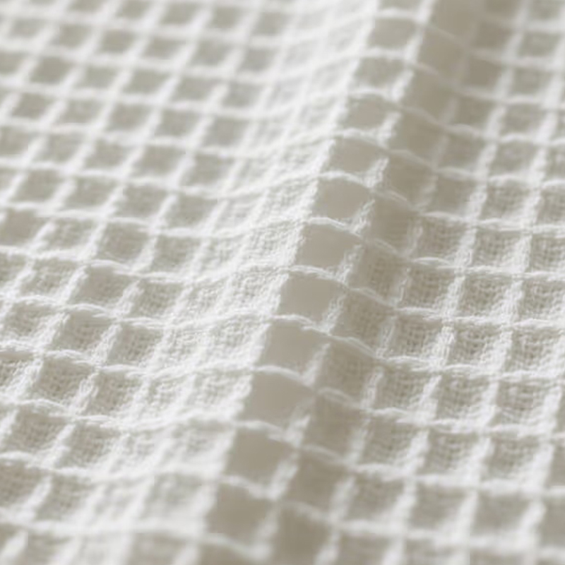 Waffle Knit Comfort Fabrics is een stof geweven met een unieke rasterachtige concave-convexe textuur. Het oppervlak heeft de vorm van een wafel, wat een uitstekend ademend vermogen en uitstekende zweetabsorptie heeft. Door deze structuur kan de stof effectief vocht opnemen en zweet snel afvoeren, waardoor de huid droog blijft. Het is geschikt om te dragen tijdens intensieve trainingen en kan zweet snel absorberen en verdampen om comfort tijdens het sporten te garanderen. De lichtheid en zachtheid van de wafelgebreide stof maken het zeer comfortabel om te dragen in de zomer. Het wordt veel gebruikt bij de productie van zomershirts en andere kleding om het lichaam koel te houden bij warm weer. Vanwege het goede ademende vermogen en de zweetafvoerende werking is deze stof zeer geschikt voor het maken van sporthanddoeken, zodat atleten snel zweet kunnen afvegen en droog blijven tijdens het sporten.